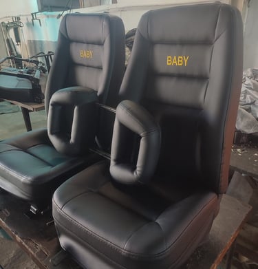Reparo e fabricação de bancos automotivos com acabamento impecável.